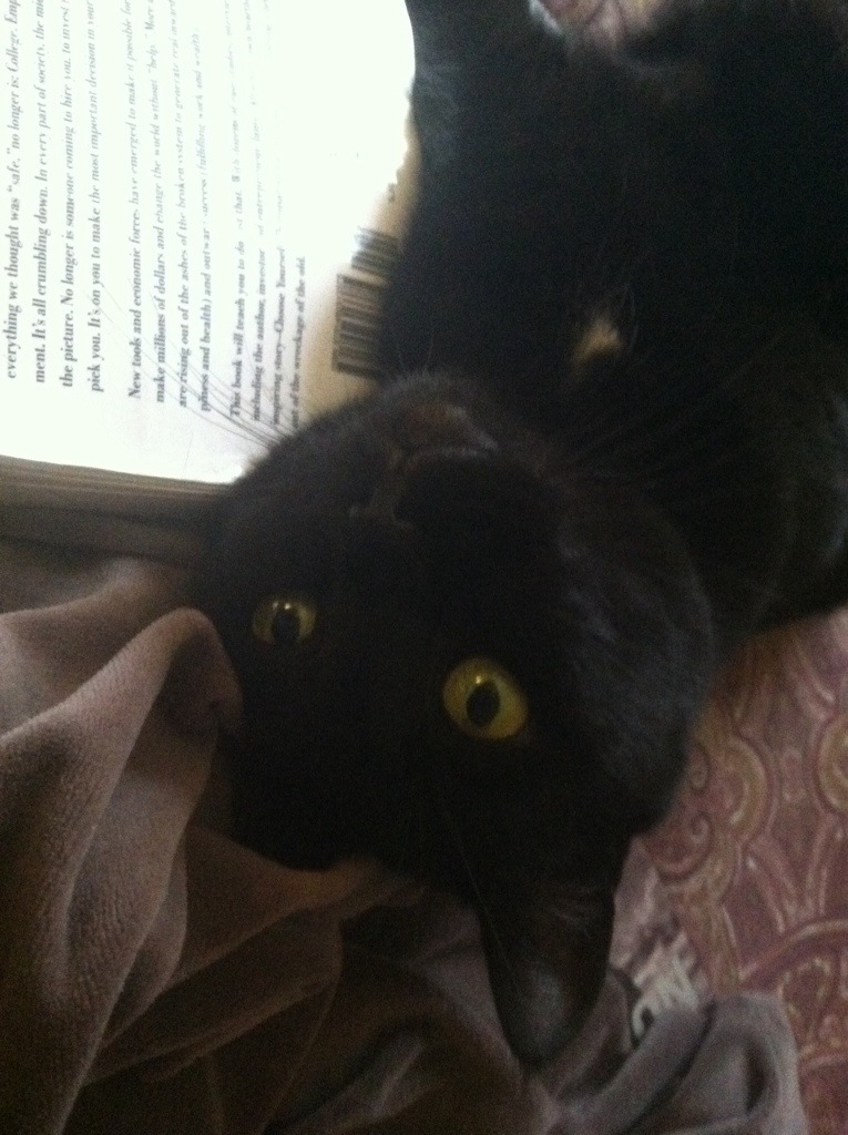 I recently took up yoga on a regular basis. Jean Claude, our black Bombay cat struck a partial head stand today to show solidarity. Namaste.