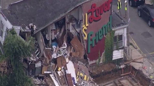 A cat is being credited with alerting a couple early Wednesday that their Philadelphia rowhome was having serious structural issues.