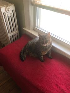 It has now been more than a year since Grace, the overweight Tabby, came to live with me. Grace at one point was tramautized easily. She now is happy and very comfortable in her adopted surroundings.