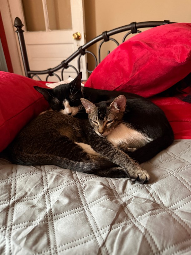 As Crazy Cat Lady and I (Azeena) welcome in the new year, we are also welcoming two new additions to our pet family (nod to Borus, the dog who resides with CCL and her crew). The cats were adopted from the Humane Rescue Alliance. Everett is a classic tabby, and Annie is a tuxedo. They now live with me but have received visits from CCL and her family. Both kittens are playful, scary intelligent, and wonderful companions. More adventures to follow