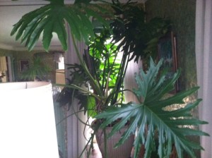 I’m at my mom’s house this week, looking after sis and caring for mom’s plants, house etc. Don’t worry Roxie and Jean Claude are guarding my house (with help from CCL and assorted friends, family etc.). You may recall the blog I wrote last summer (Planticide- July 18, 2010). I described a giant plant in my mom’s living room that fell over and its pot broke into hundreds of pieces. Yes mom rescued a piece of the plant and put it in water and then repotted it. Well here it is folks one year later complete with scales and four-foot branches. I’m just waiting for it to say “Feed Me” circa “Little Shop of Horrors,” the 1960 movie which featured Jack Nicholson.
