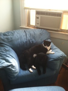 Roxie and Jean Claude, while primarily housecats, enjoy the outdoors. Well, Roxie not so much , although she likes sitting on the back porch steps or peering out the open windows to check out what’s going on. She will on ocassion come to supervise my work in the garden or to let “Rocky” the urban squirrel know that he is not to climb the huge pine tree in my backyard.